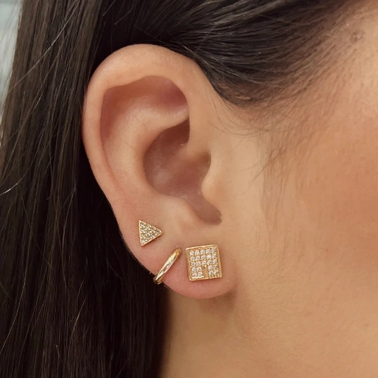 Brincos Quadrados Pavê Dourados: brilho elegante que realça qualquer look, do casual ao formal. O formato quadrado moderno e as microzircônias captam a luz, criando um brilho contínuo e sofisticado.